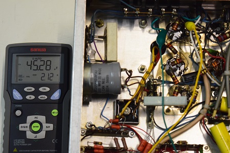 こちらは追加されたコンデンサーを含めた容量です。ESRがかなり高いのでこのブロックコンデンサーは不良のようです。