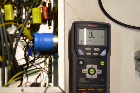 こちらも低圧の大容量コンデンサーです。同じくOL表示で導通がありません。