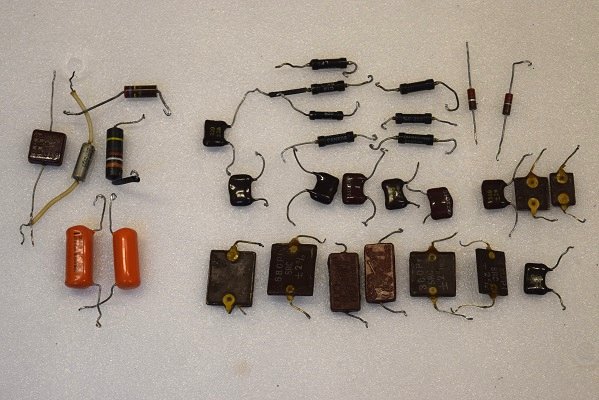 交換部品です。大量の抵抗とコンデンサーがあります。