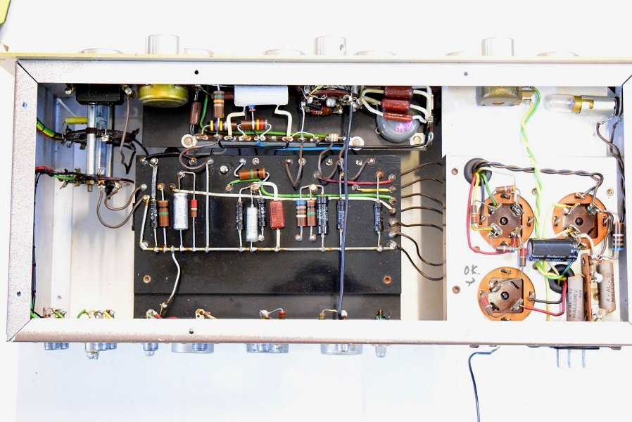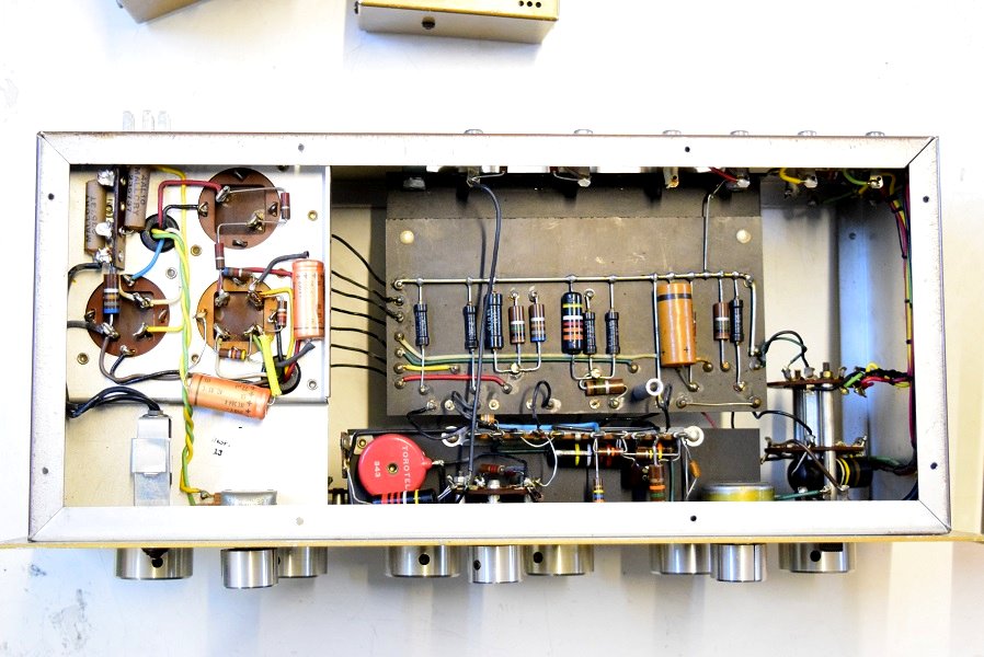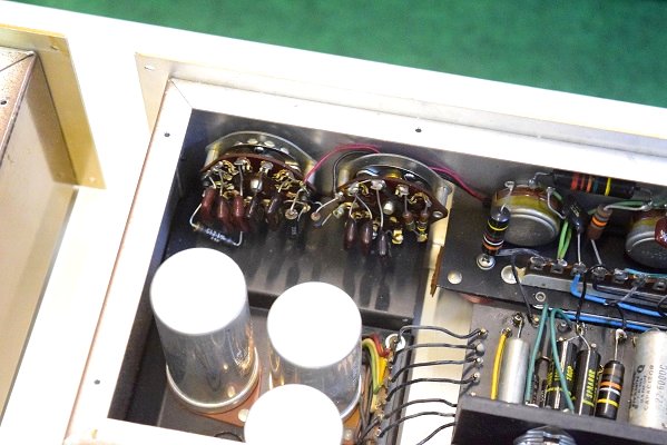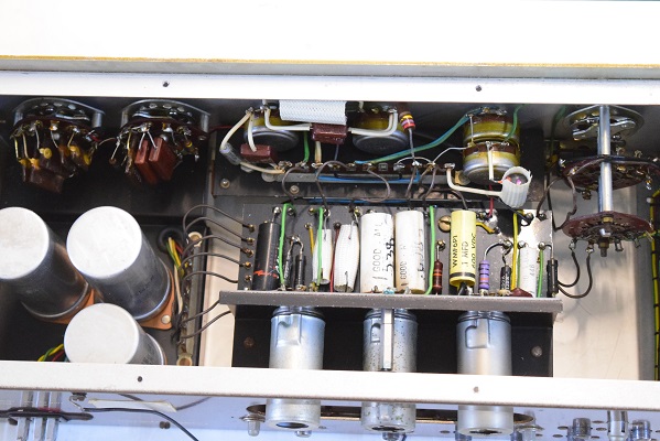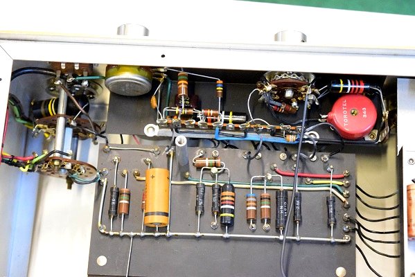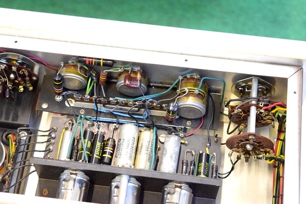 内部上面です。左のBとは違うコンデンサーでレストアされています。