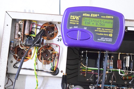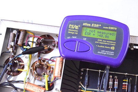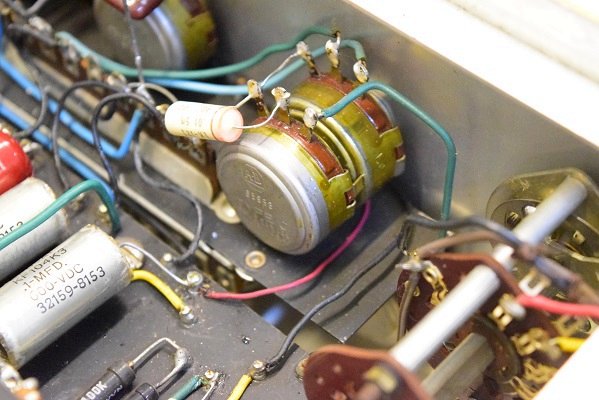 前のレストアで電解コンデンサーを追加され、この追加されたコンデンサーだけで持っているようなものです。