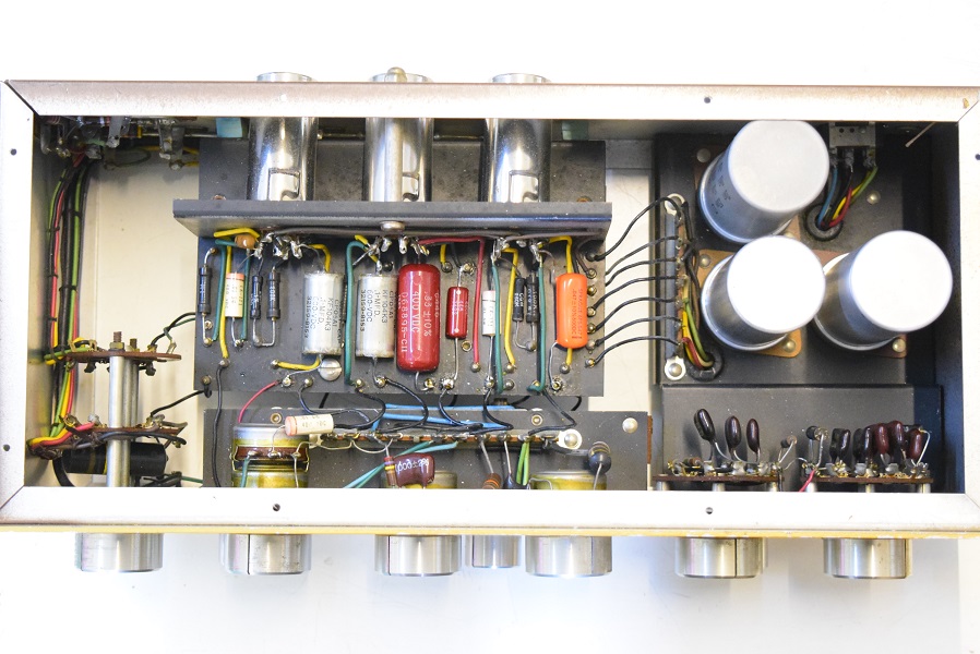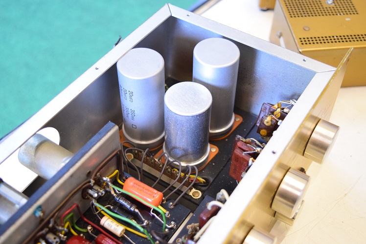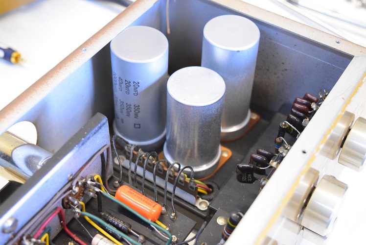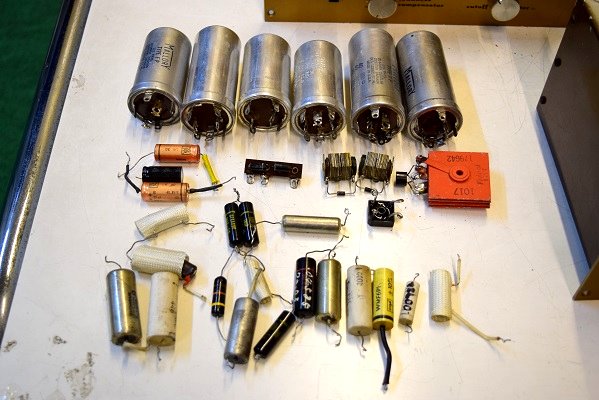 古いカップリングコンデンサーを新品に交換しました。主にオリジナルのGoodAllの現代では社名が変わったTRWに交換し、音にアクセントを持たせるために一部をWest-CAPとSPRAGUEに交換しています。