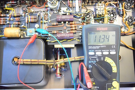 もう片側の出力管のカップリングコンデンサーです。こちらは227.9kΩと完全に絶縁不良です。