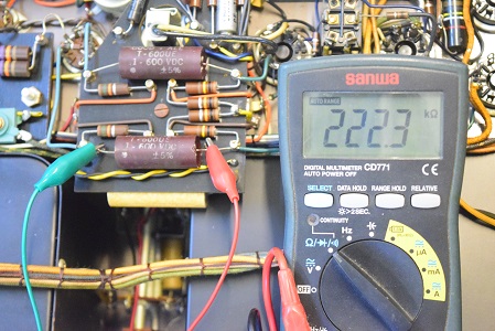 もう片側の出力管のカップリングコンデンサーです。こちらは222.3kΩと完全に絶縁不良です。