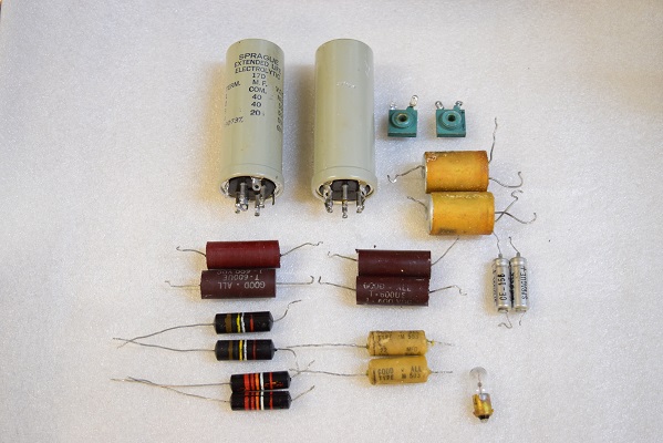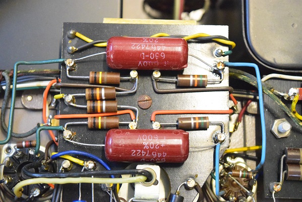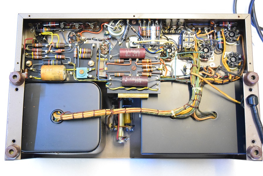 バイアスセレンとバイアスC電源の電解ブロックコンデンサーを新品に交換しました。どちらも正規仕様の為、内部もオリジナル状態です。 出力管のカップリングコンデンサーをMarantz2純正GoodAll-TRWのNOS品に交換しました。