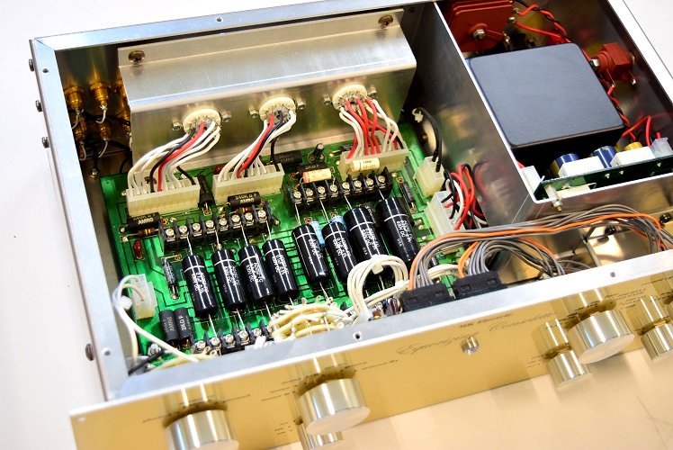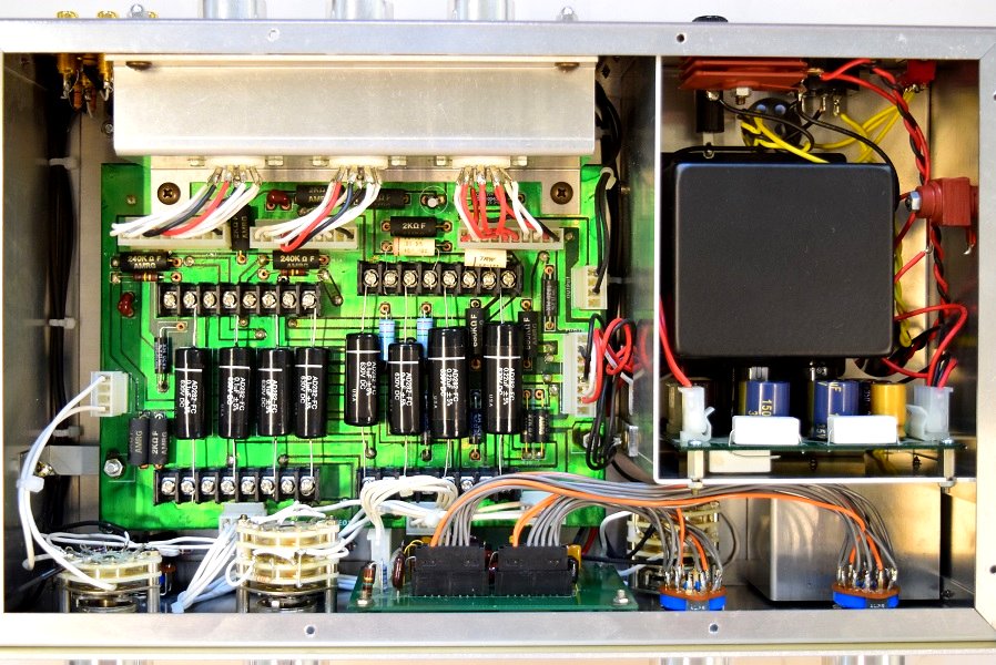 ★内部では、まず電源回路はmodel 7と同じ回路で、「音のスピード」を意識した低容量の電解コンデンサーを組み合わせ、しかも高圧低圧とも復刻ですがMatantz7に使うセレン整流器を使用しています。