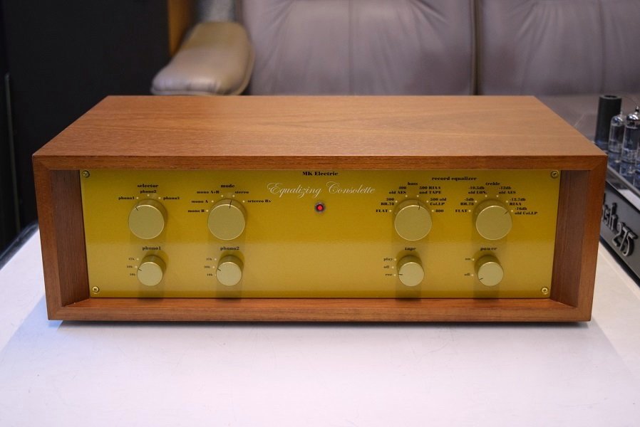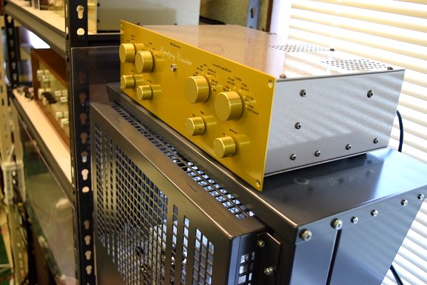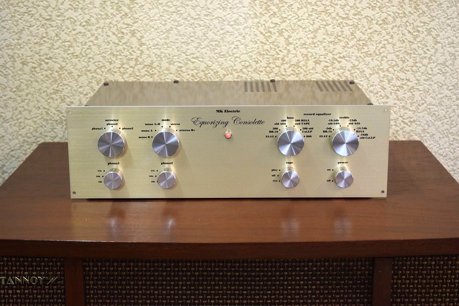 当工房での試聴エージング風景です。 このイコライザーアンプを繋いでいるプリアンプは当工房オリジナル MKe-1 です。