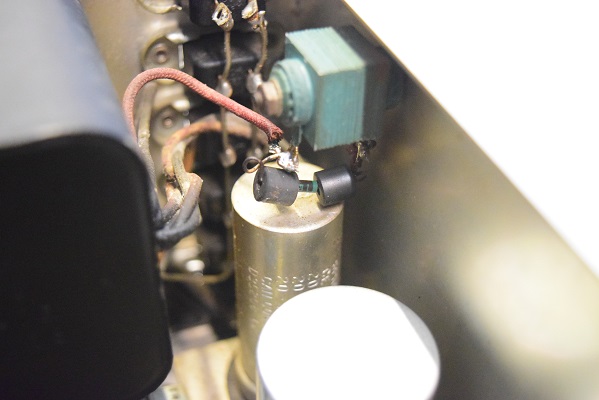 レストア依頼機の状況です。これもブロックコンデンサーの不良により以前レストアされた方はチューブラコンデンサーを2個追加されました。こちらでオリジナル状態に戻しています。