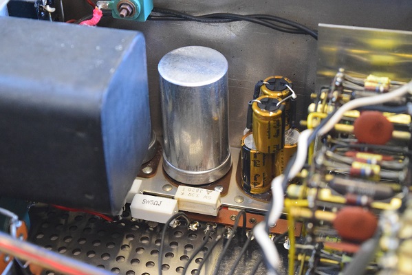 オリジナル仕様の高圧電解ブロックコンデンサー(左上の画像)と低圧の電解ブロックコンデンサー(上の画像のシルバー)を交換し、セレンも交換しました。