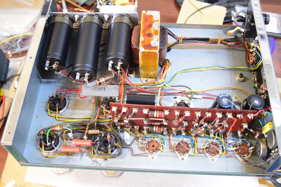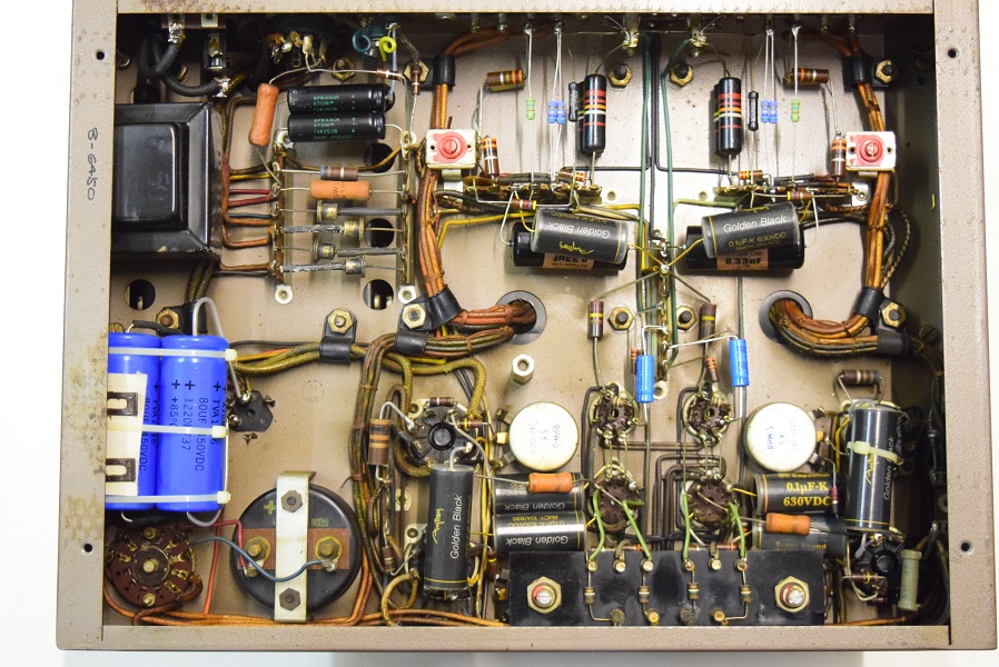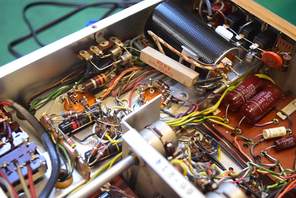 当工房でレストアし全て良品のブロックコンデンサーに換えて正規の状態に戻しました。小さなノイズも消えました。