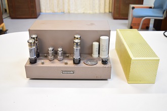 最近ヤフオクで落札されましたが、聴いていると真空管が赤くなり音が出なくなりました。見るとヒューズが飛んでいるので修理を依頼されました。