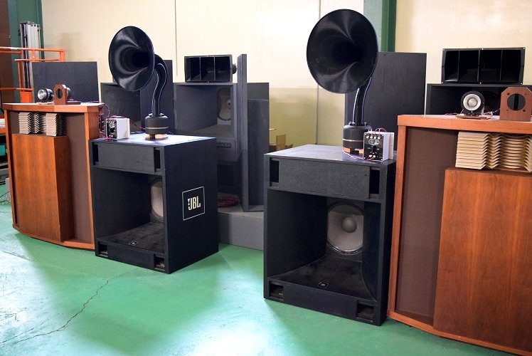 丸いラッパです。こちらはマンタレーホーンやセクトラルホーンの様に四角く角ばっていないので、開口部の音の乱反射が無くストレートに音が出てきます。少し離れると近くで聴くより大きく響きます。 やはりラッパの音です。