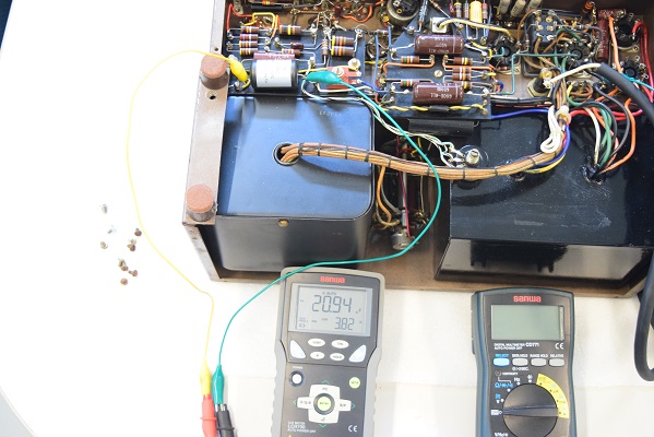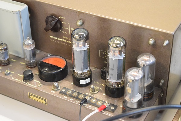 4年前に当工房から購入頂きました Marantz model 2 赤メーターの初期型です。 今回、ボンと言う音が出て出力管が赤くなったので修理を依頼されました。 購入後一度もバイアス調整をされていないそうです。