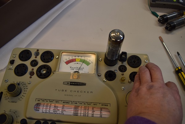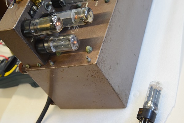 音出し風景です。異常があった左のアンプの出力管は、こちらのストック品のelectro-harmonixの新品です。正常な右のアンプはTelefunken EL34です。