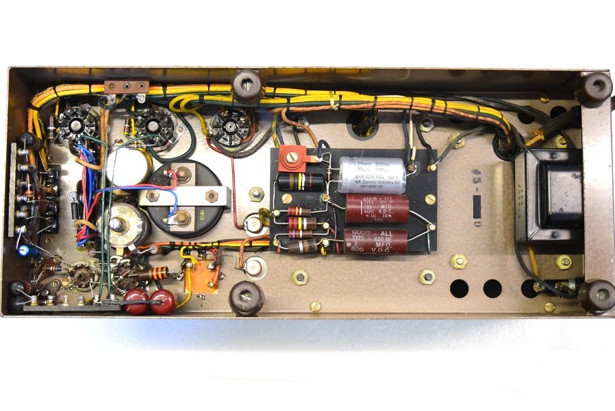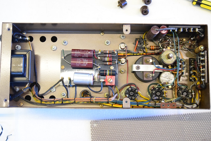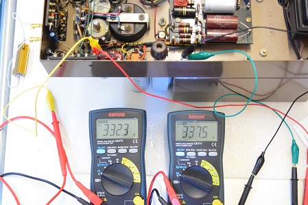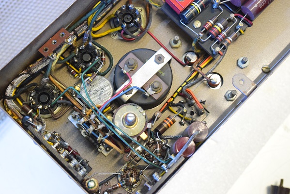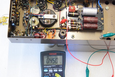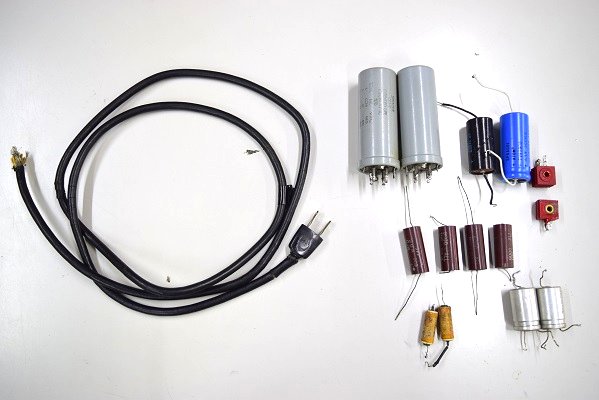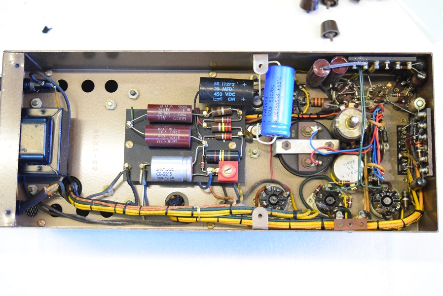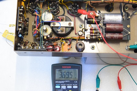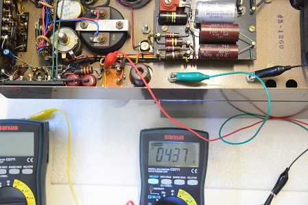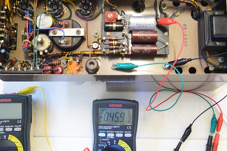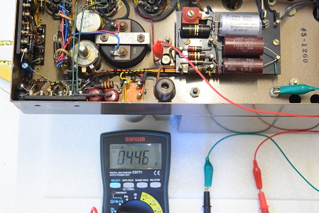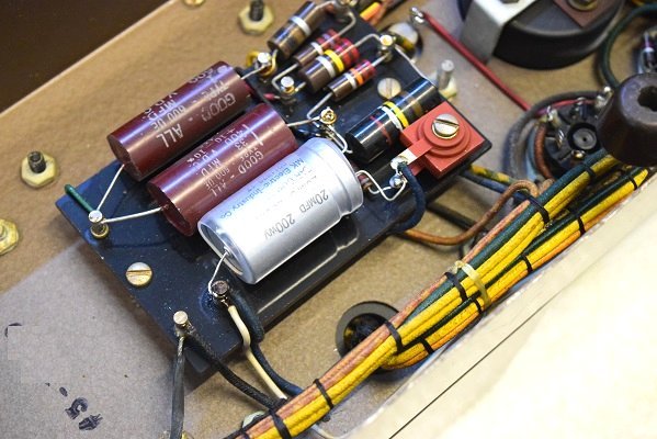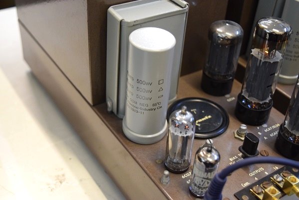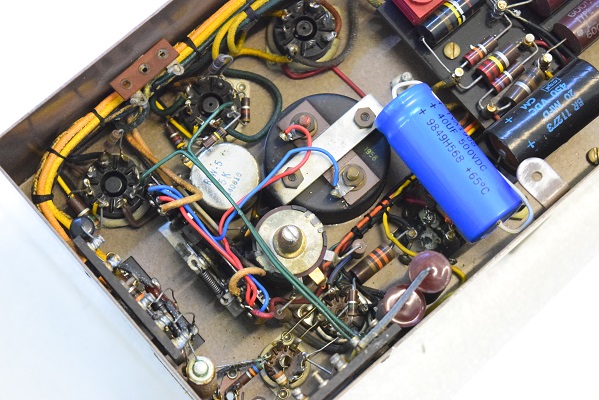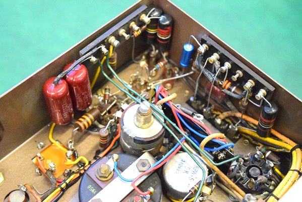 以前どこかで修理されて電解コンデンサーを追加されています。ハムが出るので追加されたのでしょう。