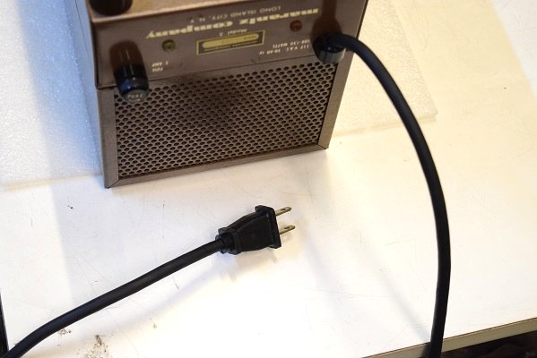 外観は年代を考慮するとかなりきれいな状態です。電源コードも両方ともオリジナルの硬い丸コードです。