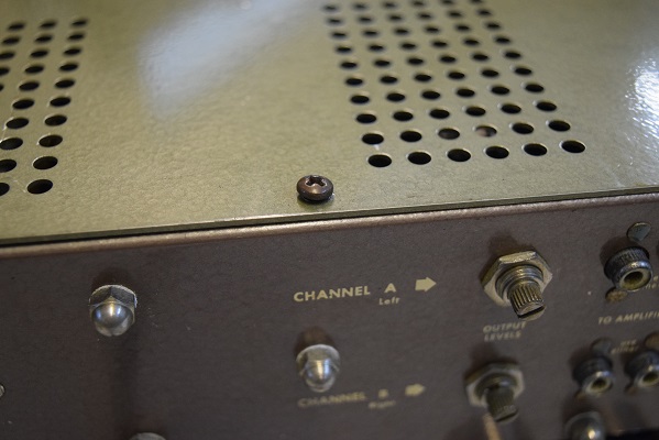 フロントパネルは勿論最初期型の特徴である薄板、角スリット、茶ノブ、角丸ツマミです。