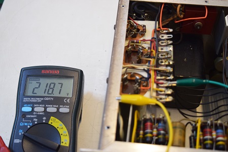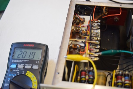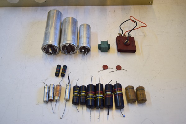 特に最初の検査で漏れ電圧測定ではまあまあ良かったものの静電容量が膨らんで周波数特性に影響のあった0.22uF/400Vを後で2本とも交換しました。画像では基板上右端から3,4本目です。ここが音に特に重要です。