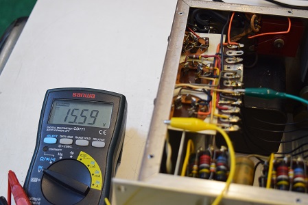 実際のヒータ電圧は15.59Vとかなり落ち込んでいます。