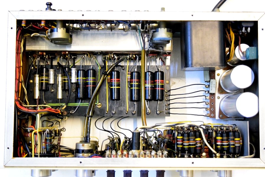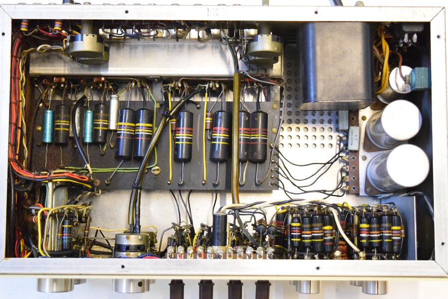 内部です。フォノイコのカソードバイパスコンの一部が交換されている以外は全てオリジナルです。