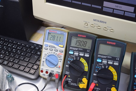 こちらの右テスターは高圧セレン直後の電圧です。259.1Vで通常よりも70V以上下がっています。
