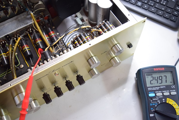 電源回路は高圧セレンを交換し、消耗品である電解ブロックコンデンサーは3本ともオリジナル仕様の新品に交換しました。これで当分の間は良い状態で聴けると思います。