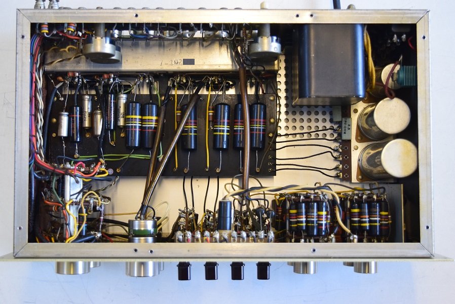 この画像の奥に少し見えますが、カソードバイパスコンデンサーが何故か2本束になっています。前回の他でのレストアの時、正規品が無かったのでしょうか?
