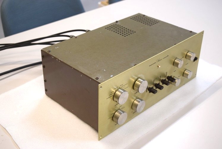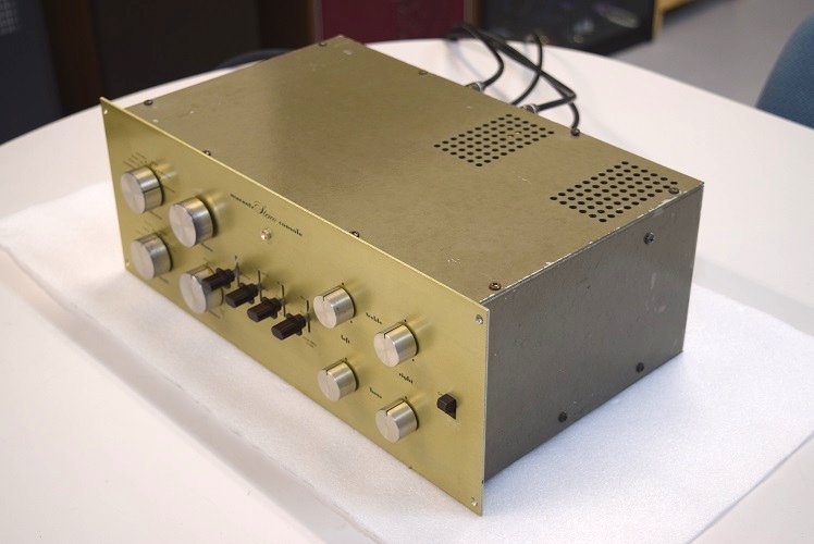 外観は年代相応の使用感がありますが、本機は敢て塗装の塗り替えは行っていません。飽くまでオリジナルとして現状を尊重しています。画像では良くわかりませんが、電源コードは切れ掛かっていて危ないのでMarantz純正ベルデンの新品と交換しました。これで当分安心して良い音を堪能できます。