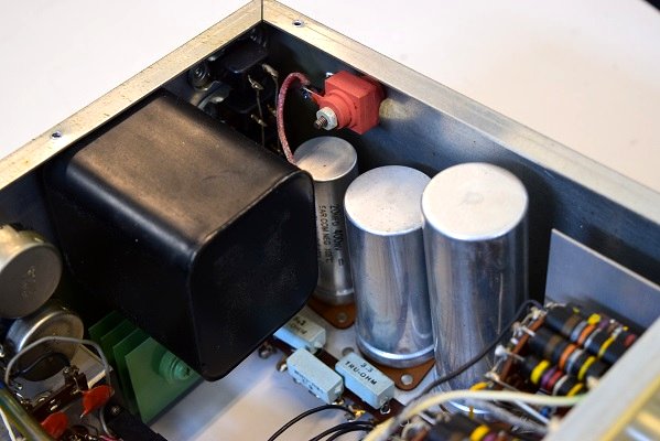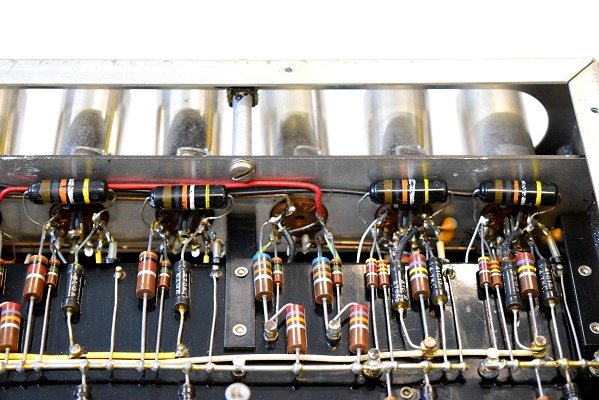 電源回路の高圧セレンと電解ブロックコンデンサーは先頭φ25だけオリジナル仕様の新品に交換しました。ここは音の胆にあたる重要なパーツです。他ではこの様なオリジナル仕様の部品は持たないので、劣化していても現状維持で交換されない場合が多いと思います。消耗品が劣化したままでは電源トランスまで逝ってしまいます。