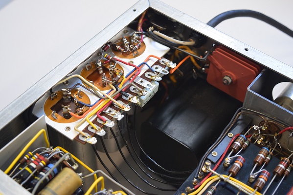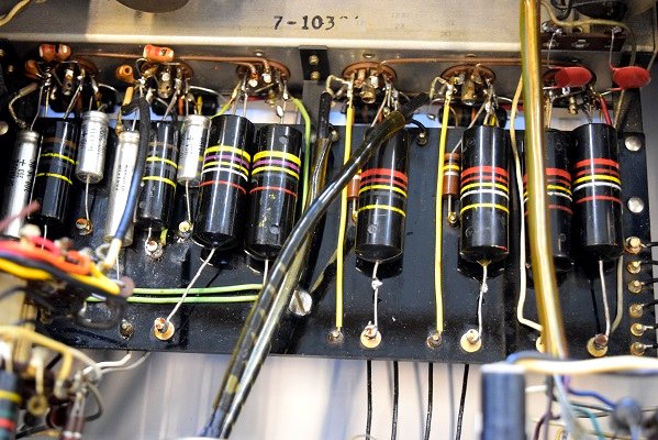 電源回路の高圧セレンと全ての電解ブロックコンデンサーはオリジナル仕様の新品に交換しました。ここは音の胆にあたる重要なパーツです。他ではこの様なオリジナル仕様の部品は持たないので劣化していても現状維持で交換されない場合が多いと思います。消耗品が劣化したままでは電源トランスまで逝ってしまいます。