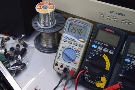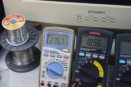 右テスターは高圧セレン直後です。278.2Vで約50V以上下がっています。このセレンは不良です。