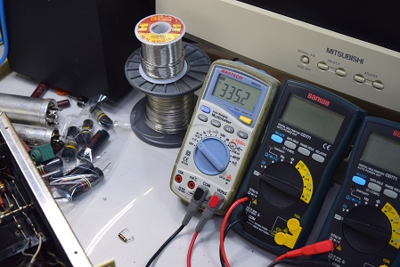 電源回路は高圧セレンを交換し、電解ブロックコンデンサーも高圧2本をオリジナル仕様の新品に交換しました。