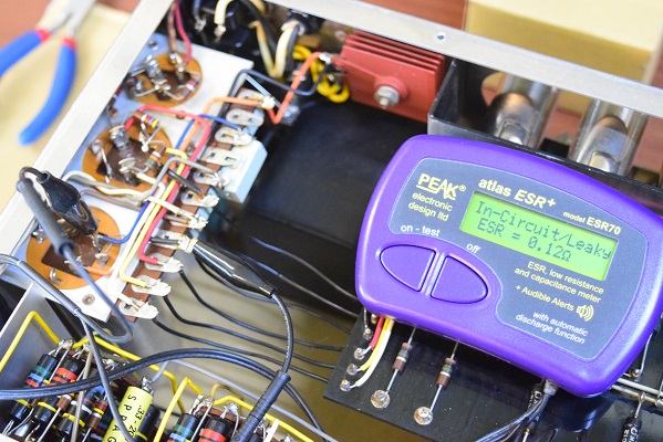 一般にこのブロックコンデンサーの代品はありません。この為他のレストアされるところではチューブラ電解コンデンサーを並列に追加して凌ぎます。こちらでは代品ですが同規格の新品を確保することができます。