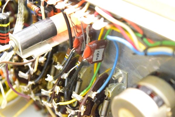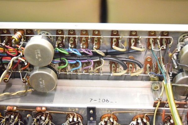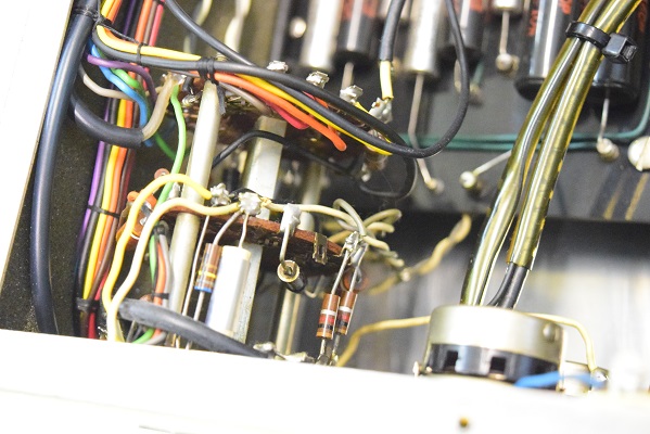 裏面です。低圧セレンも交換しました。これで電源回路の消耗品は全て新品になります。横一列の小さなカップリングコンデンサーも4本とも良品バンブルビーに交換しました。ラインアンプのカソード抵抗を音の良いAMRGに交換しました。