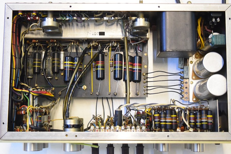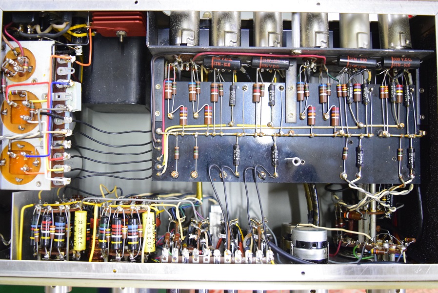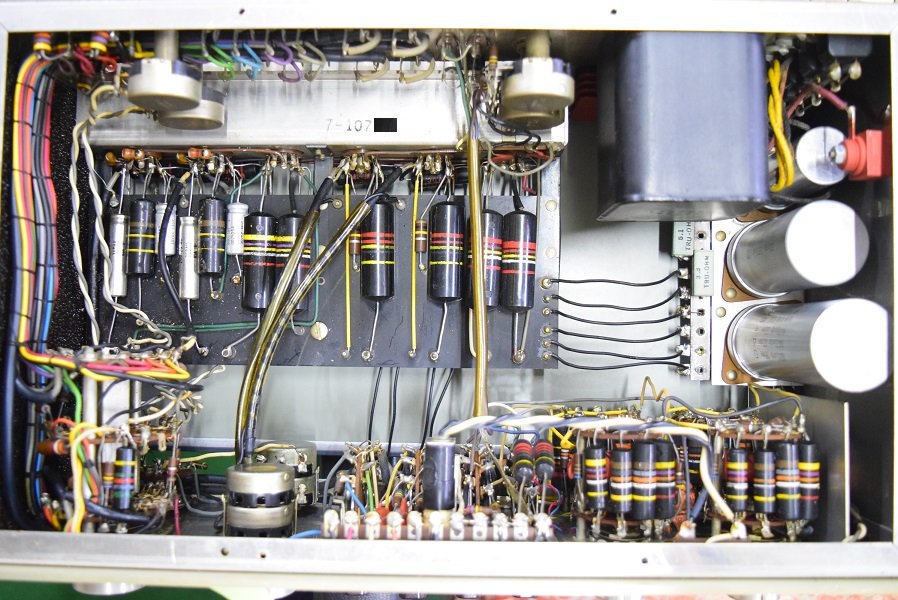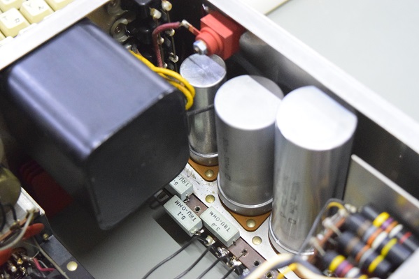 内部上面です。殆どのカップリングコンデンサーはオリジナルのままです。