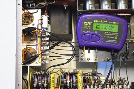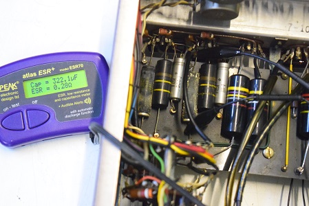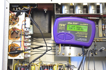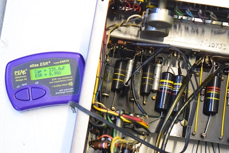 ★電源投入前の各電解ブロックコンデンサーのチェックから始めます。