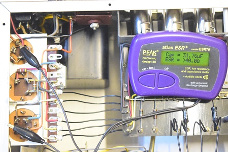 高圧先頭φ25です。いきなり不良です。ESRが測定範囲の限界を超えています。