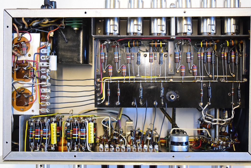 左下2個の黄色のSPRAGUEコンデンサーもSPRAGUEの新品交換しました。このコンデンサーも音質に大変重要なコンデンサーです。不良になると低域がだらしなく膨らんできます。