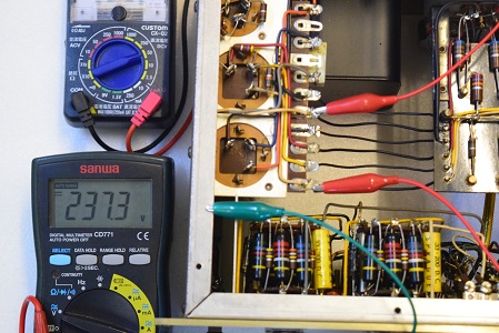 裏面です。こちらも横一列の小さなカップリングコンデンサーは160Pに交換されています。低圧セレンも交換されています。