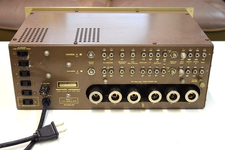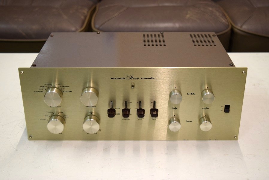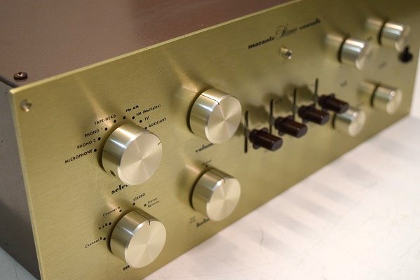 大変奇麗なMarantz7 S/N 11300番台です。フロントパネルはシャンパンゴールド、ノブや電源スイッチの色は焦げ茶色です。