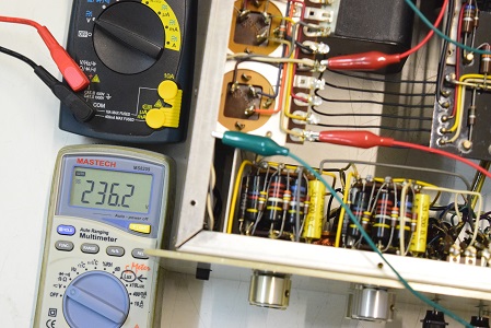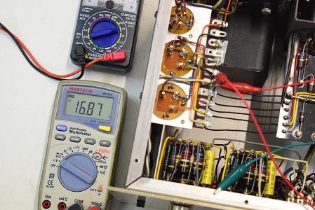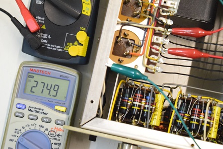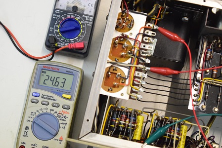 電源は値が良かった高圧セレンはそのまま残し、電解ブロックコンデンサーを3本ともオリジナル仕様の新品に交換しました。