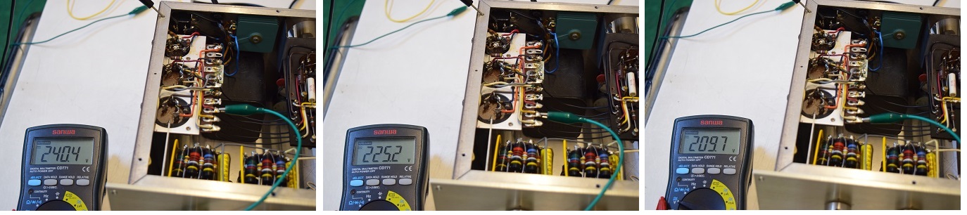 症状では突然片側が音が出なくなり真空管を交換したら復帰したと言われていますので、やはりこれだけ電源電圧が下がると真空管に依っては耐え切れなくなるものも出てくるのでしょう。