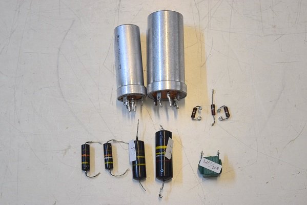 ブロックコンデンサーの検査です。左から高圧B電源φ25、中央も高圧φ35。 右が低圧ヒータ用φ35です。