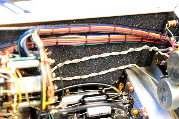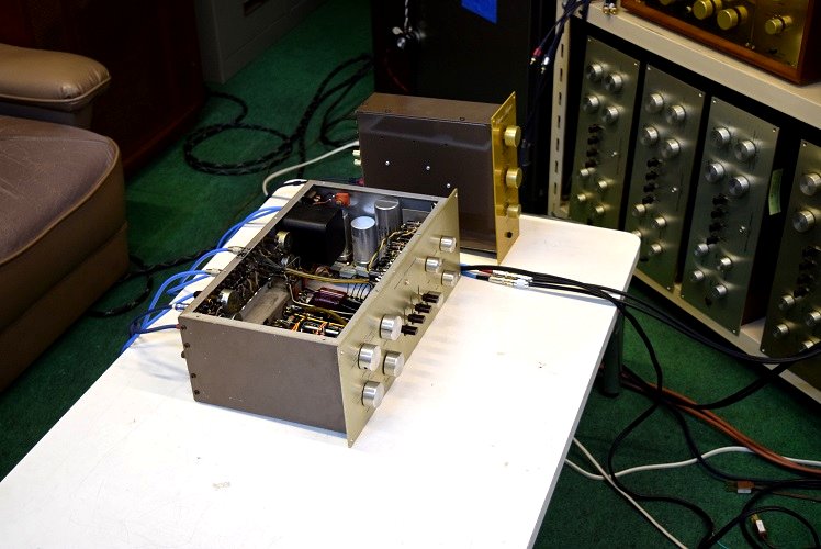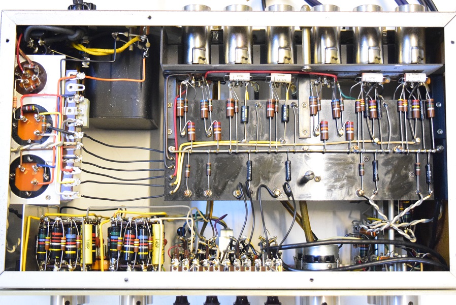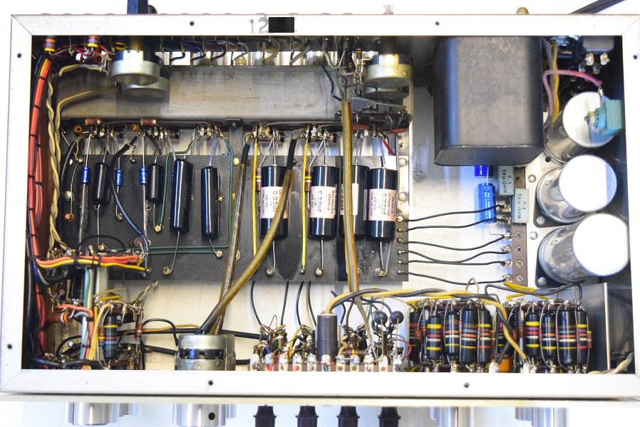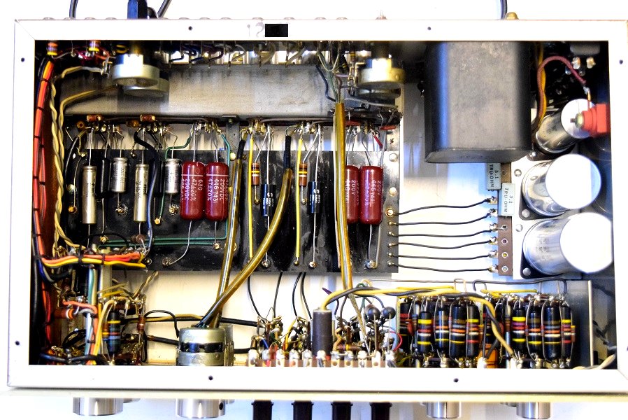 内部上面です。全ての主要カップリングコンデンサーは購入先のショップで新品の代品に交換されています。またフォノイコのカソードバイパスコンも新品交換されています。