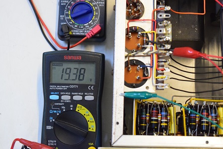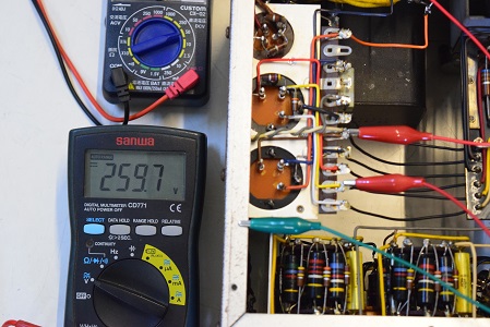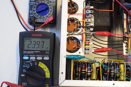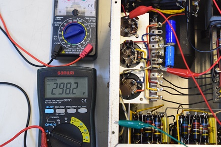 高圧の電圧は全てかなり落ちていました。こちらでは常にコンセントの電圧は117Vで検査します。この状態でこれだけ電圧が落ちていますが、これを100Vで聴いているとこれに2割程まだ電圧が落ちるので、その内電源トランスが漏電し始め、最後はトランスが焼損してご臨終です。