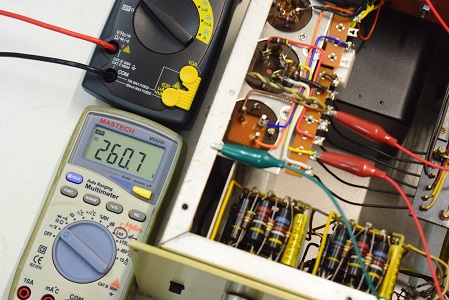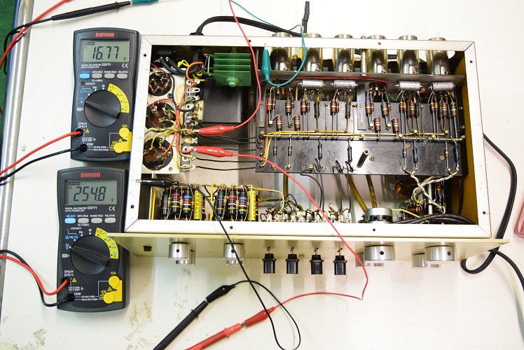 3年前に当工房で代品のコンデンサーを使ってレストアした物を購入されました。この3年間でカップリングコンデンサーが程よくエージングが効いてとても良い音です。