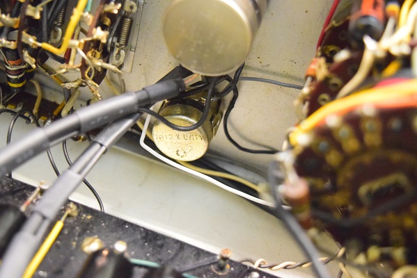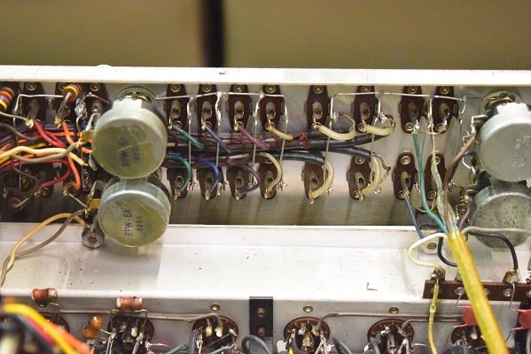 ボリュームから伸びているシールド線です。以前他でのボリューム交換の時かなり手荒な処置をされて線端が溶けて届かなくなっているのを無理矢理はんだ盛りで繋げてありました。