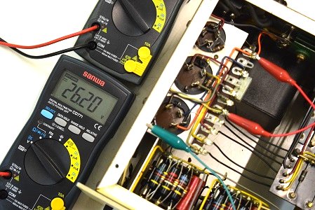 電源トランスの高圧出力です。AC286.1V出ています。良好です。