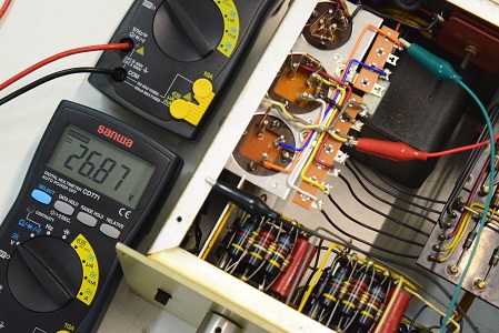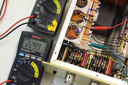 カップリングコンデンサーの漏れ電圧です。1V以上の漏れがあります。まだ高圧電圧が低いのでこの程度ですがレストア後正規の電圧になるとこの倍以上の漏れになると予想します。