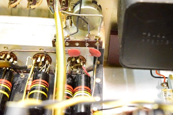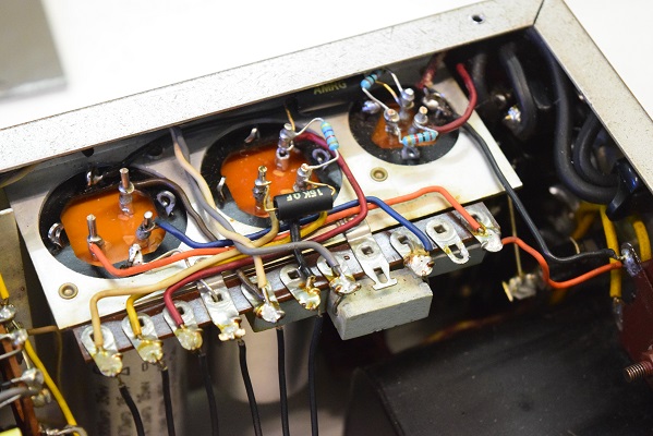 交換されている高圧セレンです。電解ブロックコンデンサーは3本ともオリジナルです。